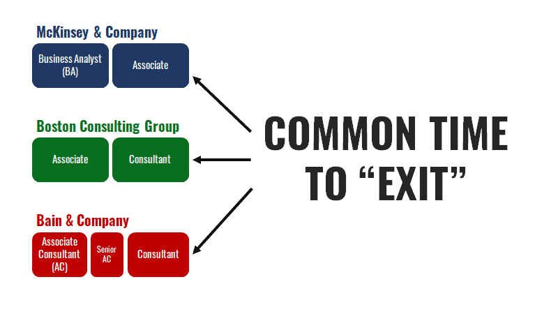 About 2-3 years after getting hired in the Associate, Consultant, and Consultant roles, people start planning their next move.