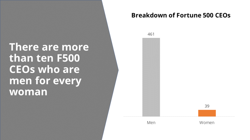 This slide is similar to the first one except it has a block for every single CEO. This still shows a relatively small number of women CEOs but because each one has a block it may not feel as vast a gap as the first slide.