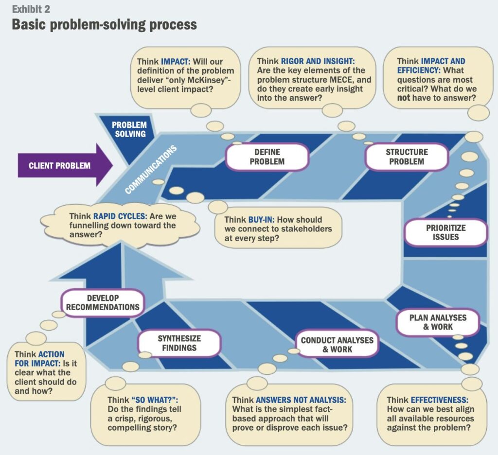 When I joined McKinsey, I was struck by how often the term “problem-solving” was used. Instead of being called “meetings,” teams met for what were called “Problem-solving sessions.” These were focused sessions designed to work through specific questions or challenges as part of a broader client engagement.
