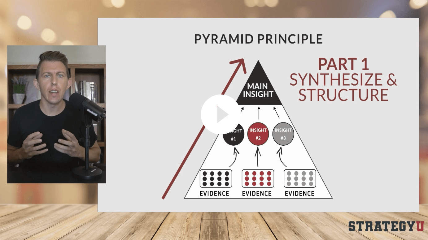 I wrote this email with the goal of giving you a practical tool you can apply in your work. If you’re ready to go deeper, consider enrolling in Think Like a Strategy Consultant. I wrote a full lesson in the curriculum covering how to synthesize & structure your argument with The Pyramid Principle. Get a preview from this free preview of an introductory video: