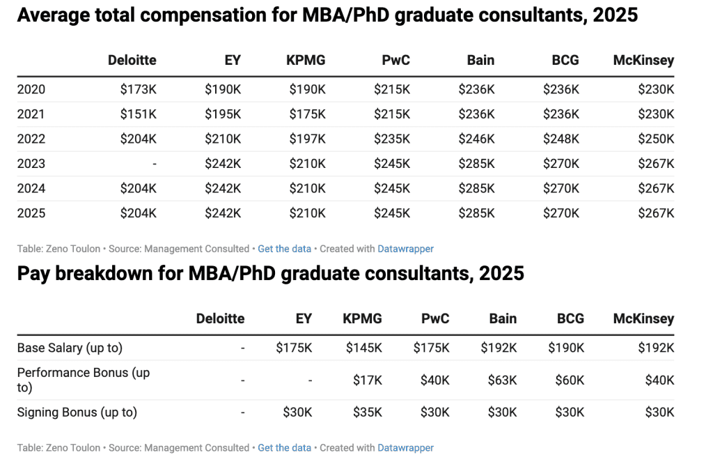 One of the most visible indicators of a firm’s standing in the consulting industry is its compensation structure. In recent years, premium firms such as those in the MBB category have consistently maintained higher base salaries and performance bonuses relative to other players in the market.